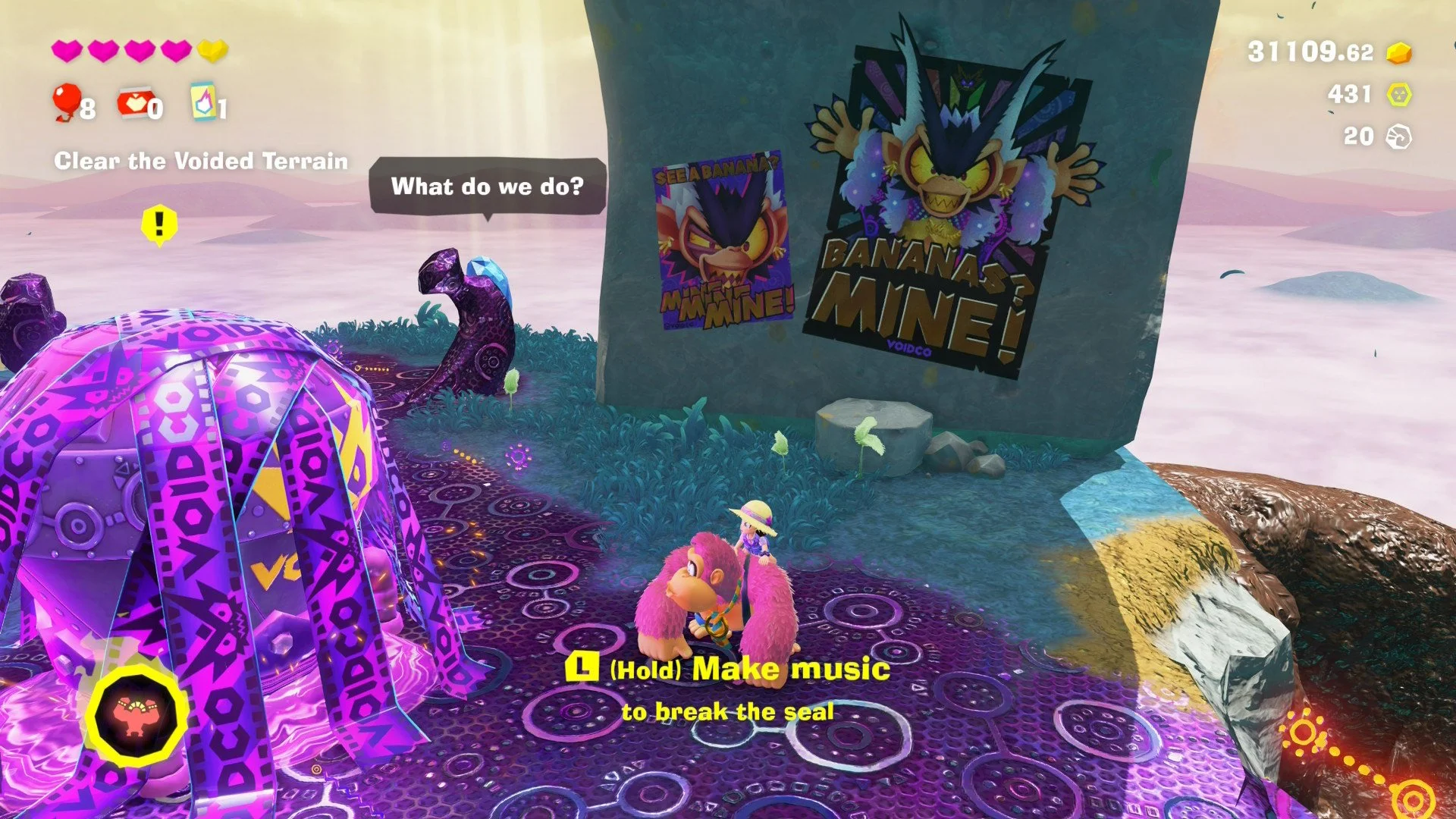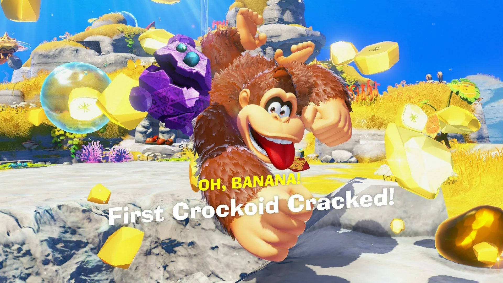There’s also no text log, which is something I’d generally like to see in most if not all games. Normally, it’s more necessary in RPGs or narrative-heavy games. But while Bananza isn’t exactly that, there is a particularly strong use case for a text log here anyways: Kongling.