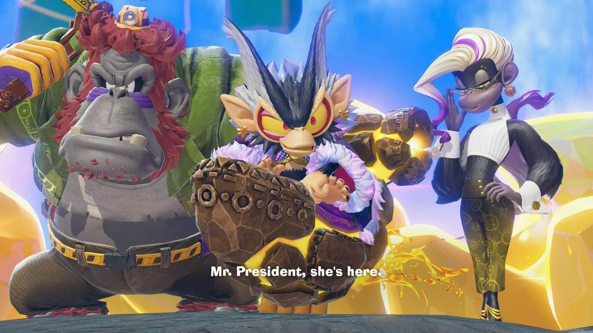 Kongling (or whatever you want to call the language that most of the animals in this game speak) is just a made-up hodgepodge of sounds. Pauline is the only character who speaks English/whatever your preferred language is. So when the other NPCs are talking either during cut scenes or even just giving helpful tidbits about where to go and what to do in the world, you can’t fall back on the game’s audio to help you interpret the dialogue.